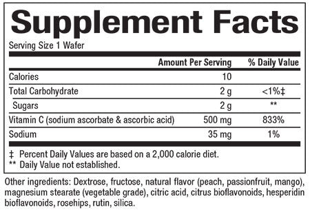Natural Factors 100% C 500 mg natural fruit chews are an easy-to-take formula to help in the development and maintenance of bones, cartilage, teeth, gums, and connective tissue formation. Each wafer also contains citrus bioflavonoids, rosehips, and rutin for increased absorption and therapeutic benefits.