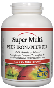 Natural Factors Super Multi Plus Iron supplies a broad spectrum of vitamins, minerals, lipotrophic factors, and synergistic nutrients for the normal chemical processes that occur in the body. This formulation contains nutrients that are important for the maintenance of good health, plus iron, which is important for women of child-bearing age.
